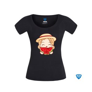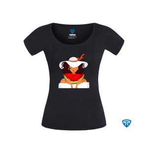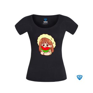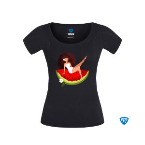 تیشرت ضدتعریق زنانه مشکی طرح دختر دامن هندونه ای (تاپ سفید)