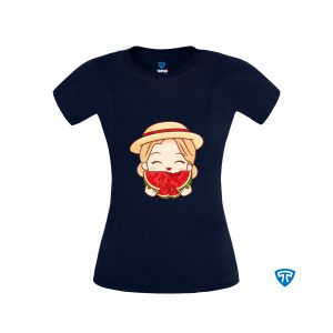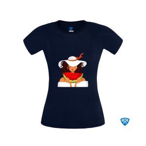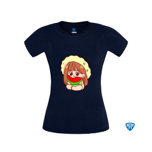 تیشرت ضدتعریق زنانه سورمه ای طرح دختر دامن هندونه ای (تاپ سفید)