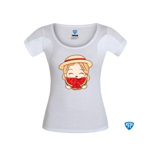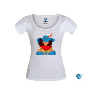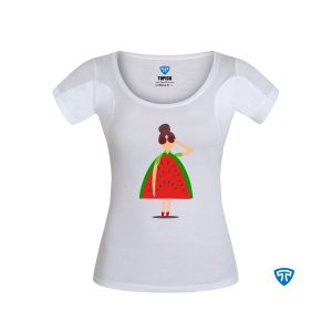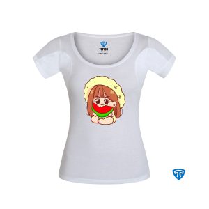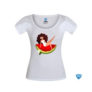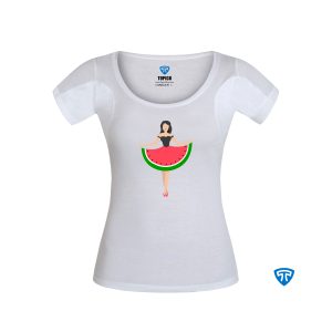 تیشرت ضدتعریق زنانه سفید طرح دختر پیرهن هندونه ای