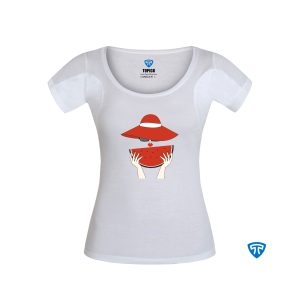 تیشرت ضدتعریق زنانه سفید طرح دختر کلاه قرمز