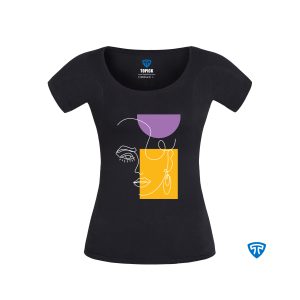تیشرت ضدتعریق زنانه مشکی طرح چهره و گندم