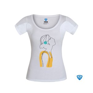 تیشرت ضدتعریق زنانه سفید طرح نیم رخ