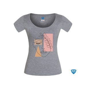 تیشرت ضدتعریق زنانه ملانژ طرح چهره و گوشواره طلایی