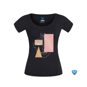 تیشرت ضدتعریق زنانه مشکی طرح چهره و گوشواره طلایی