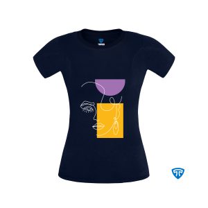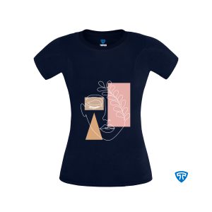 تیشرت ضدتعریق زنانه سورمه ای طرح چهره و گندم
