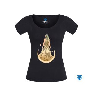 تیشرت ضدتعریق زنانه مشکی طرح چهره و ماه