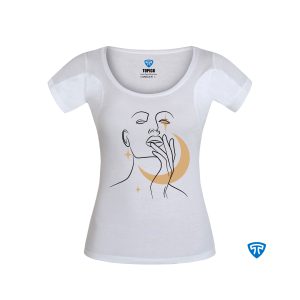 تیشرت ضدتعریق زنانه سفید طرح چهره و ماه