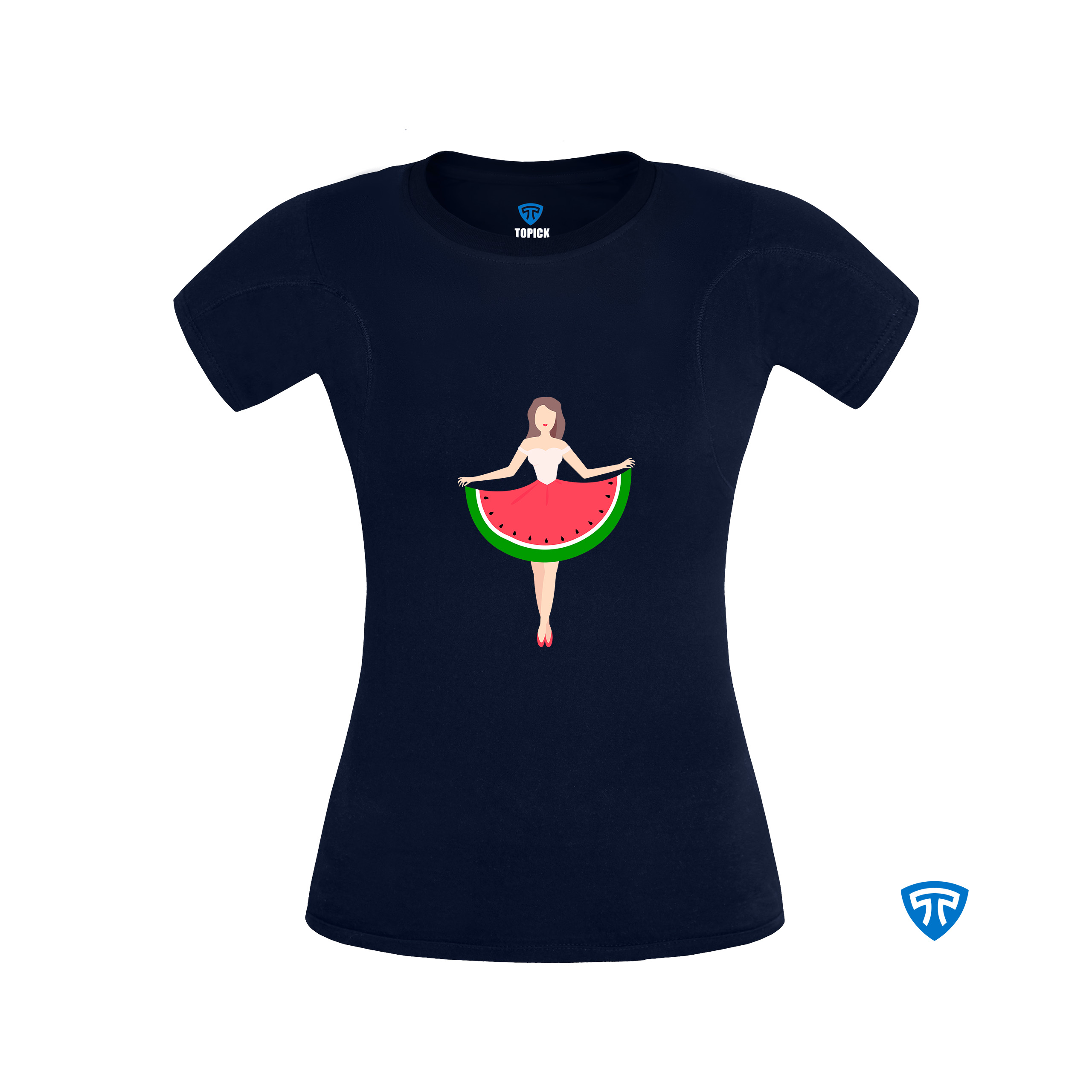 تیشرت ضدتعریق زنانه سورمه ای طرح دختر دامن هندونه ای (تاپ سفید)