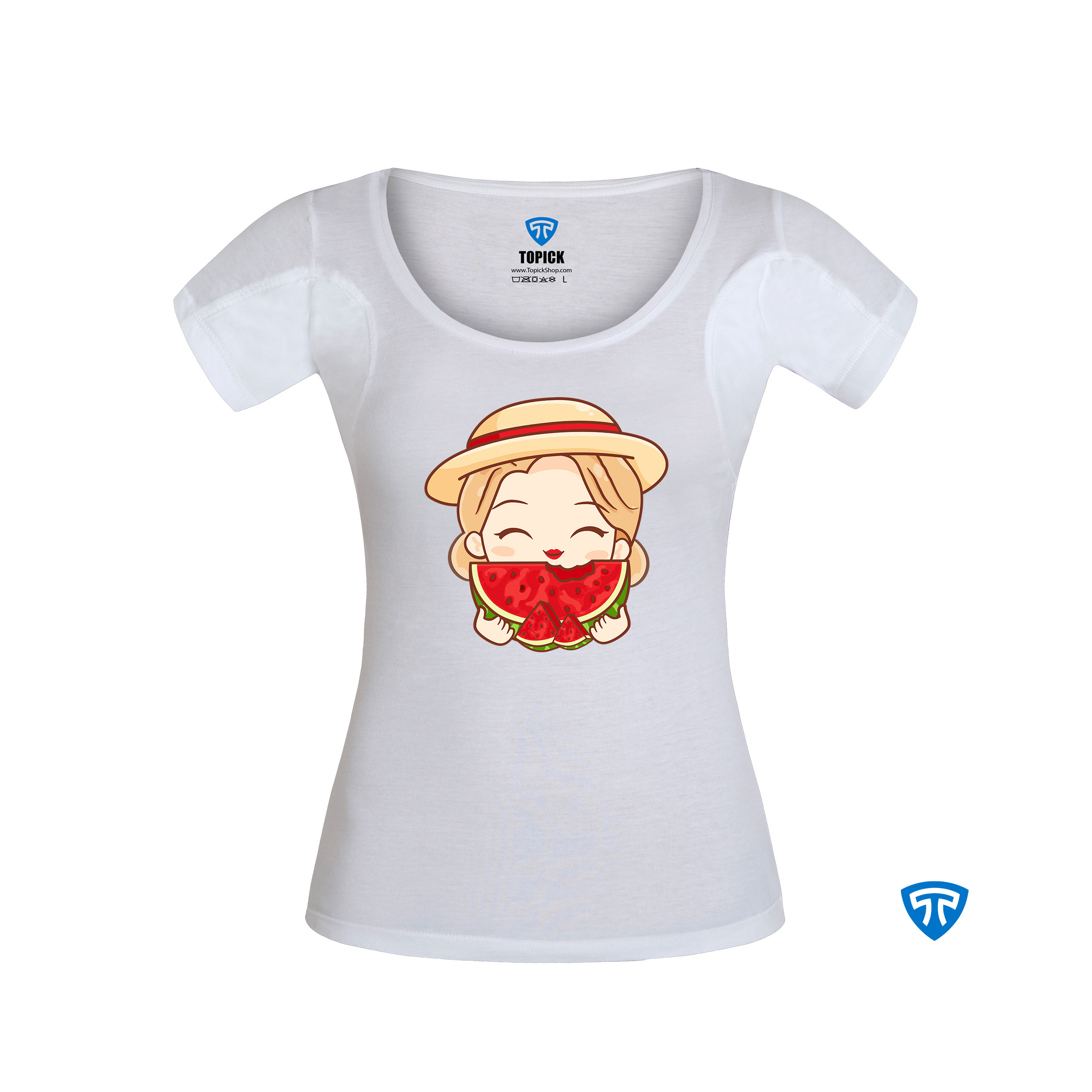 تیشرت ضدتعریق زنانه سفید طرح دختر بچه کلاه کرمی