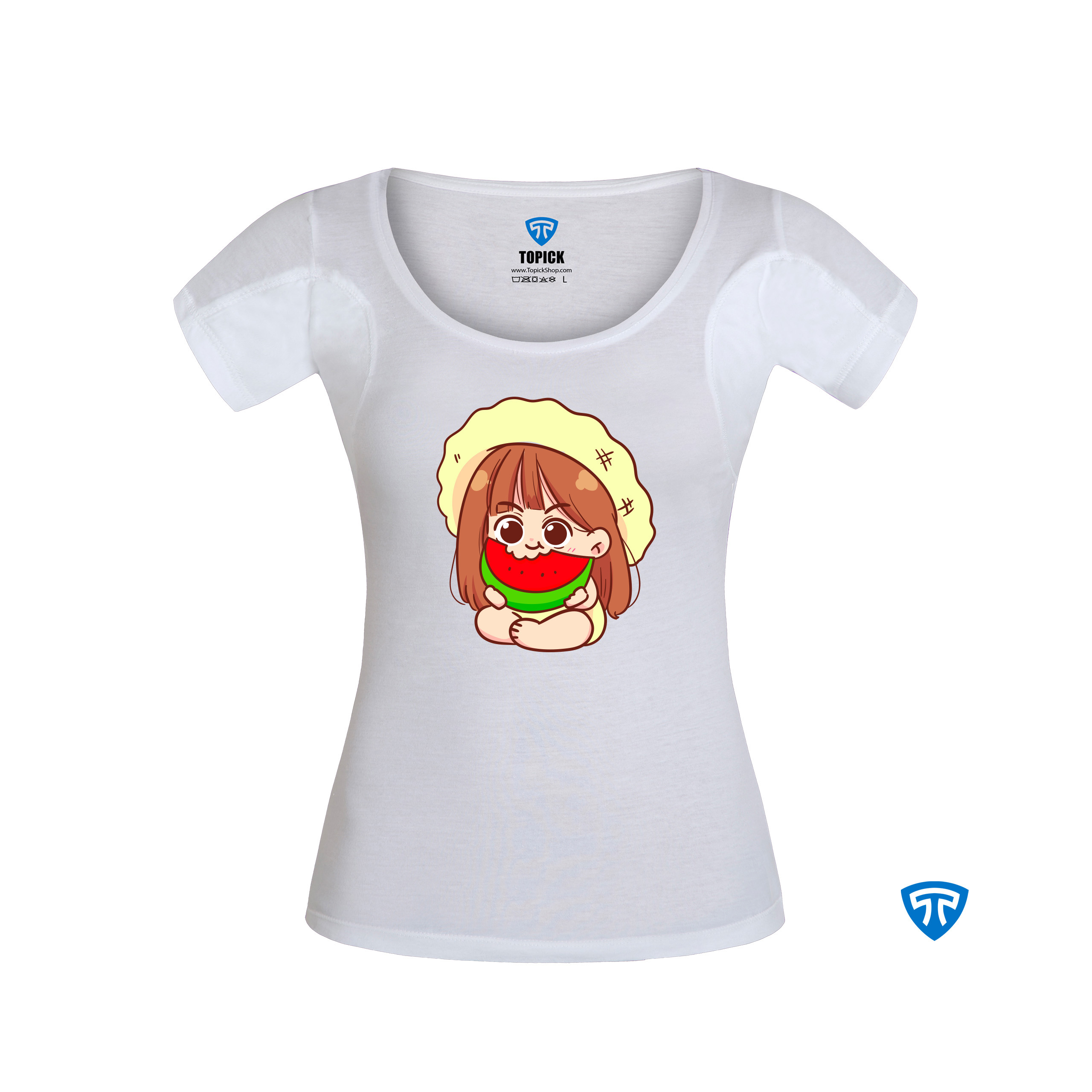 تیشرت ضدتعریق زنانه سفید طرح دختر بچه کلاه زرد