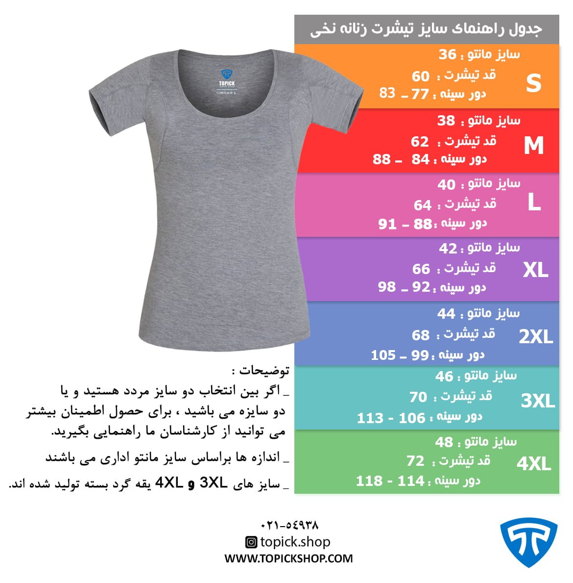 معیار سایزبندی تیشرت تاپیک، اندازه دور سینه است.