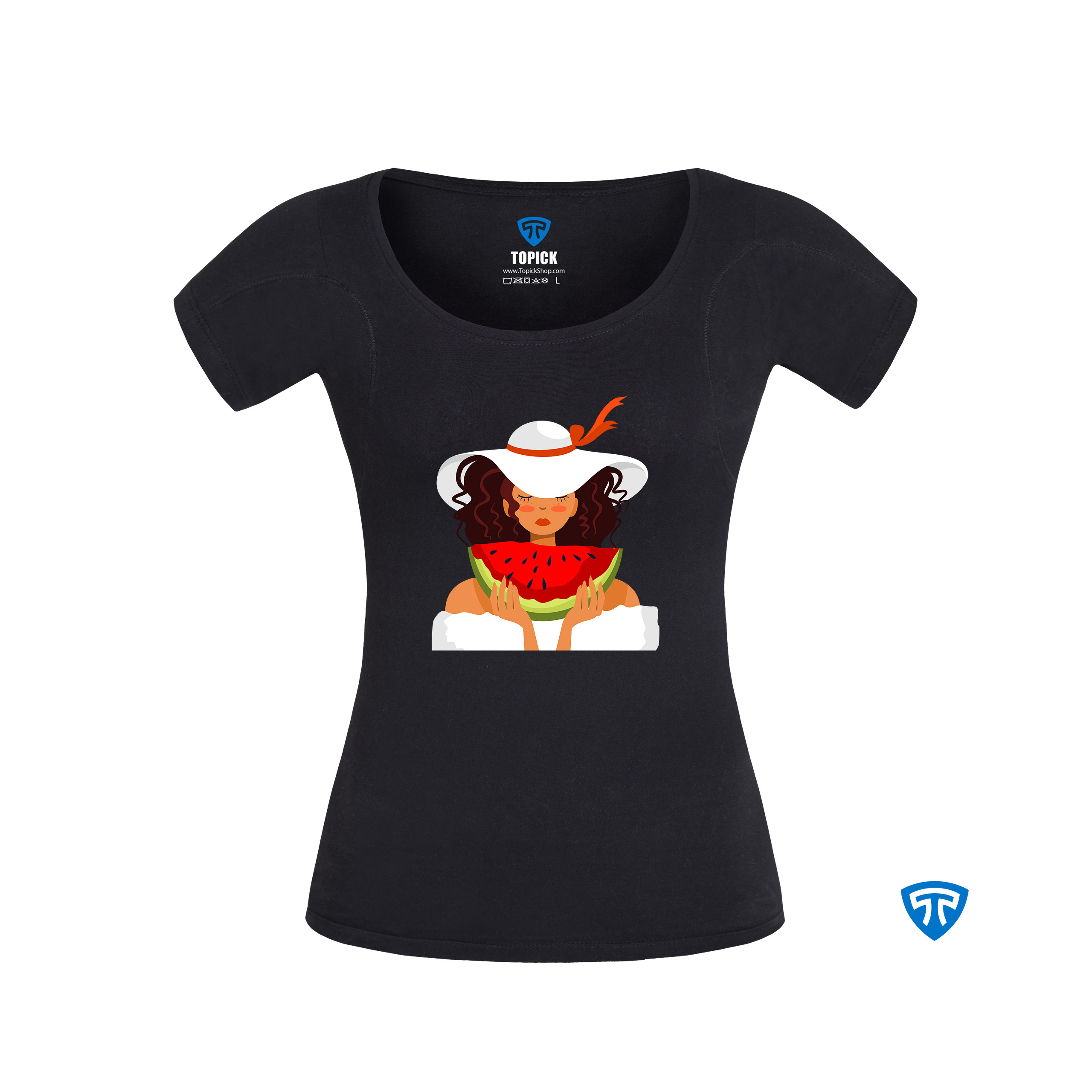 تیشرت ضدتعریق زنانه مشکی طرح دختر کلاه سفید