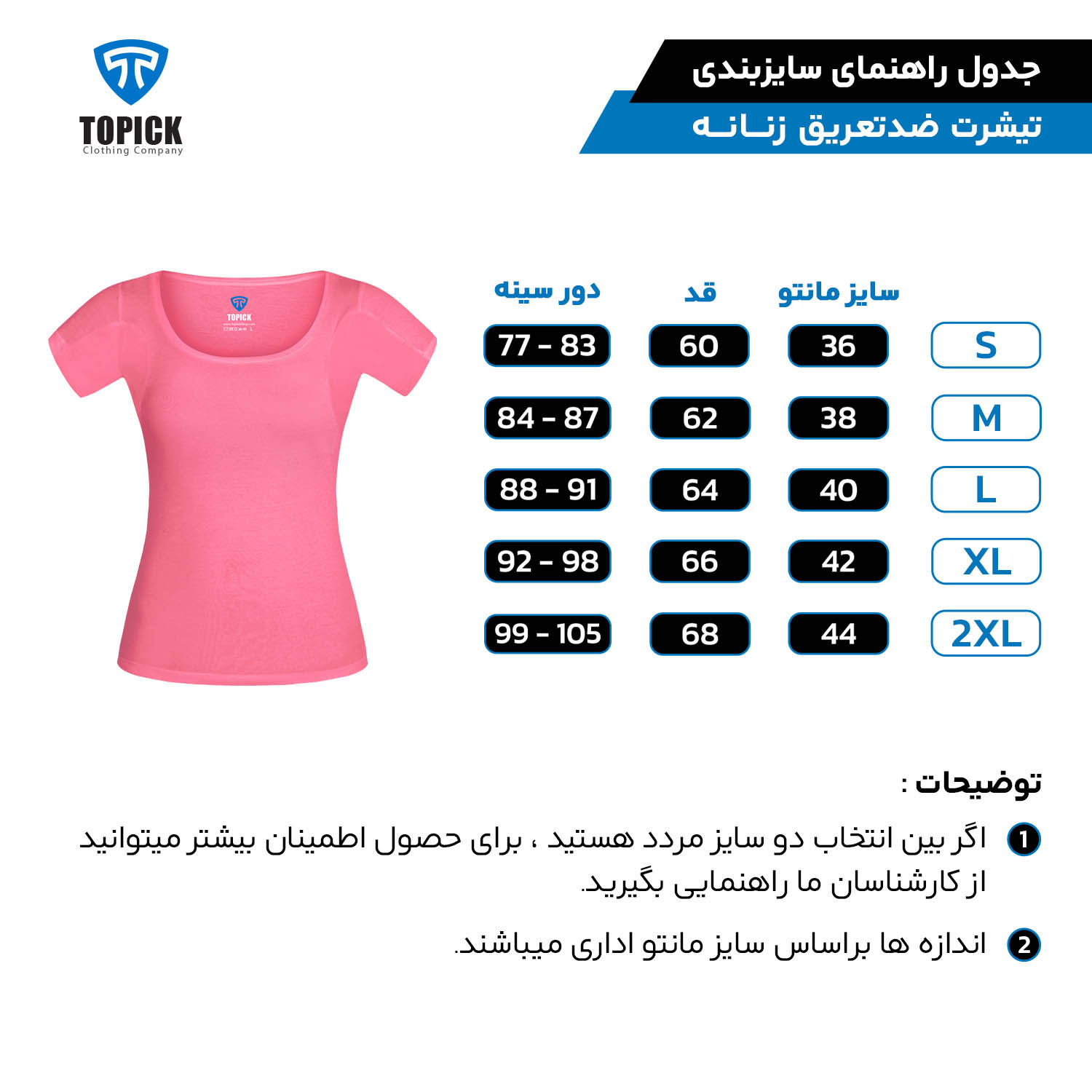 معیار سایزبندی زیرپوش تاپیک، اندازه دور سینه است.