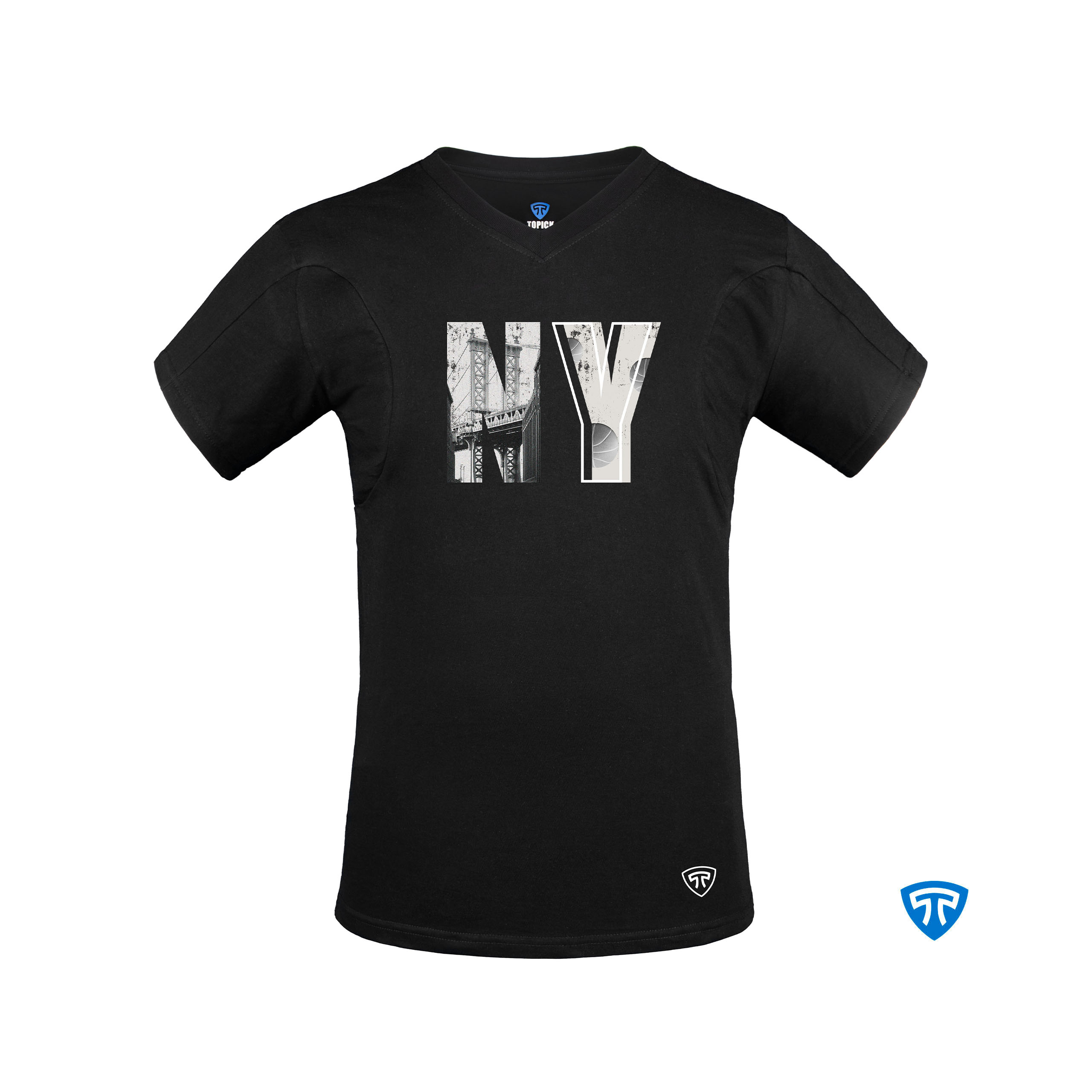 تیشرت نانو آنتی باکتریال ضدتعریق مردانه یقه هفت بسته مشکی طرح NY
