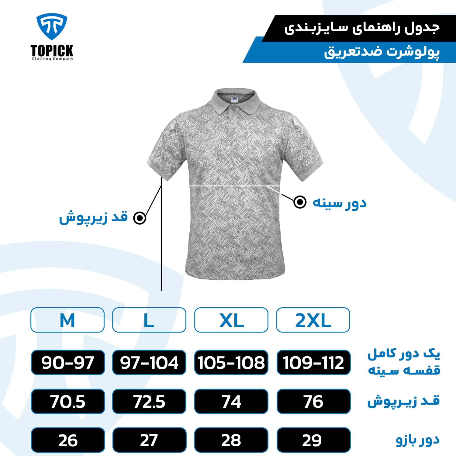 معیار سایزبندی پولوشرت تاپیک، اندازه دور سینه است.